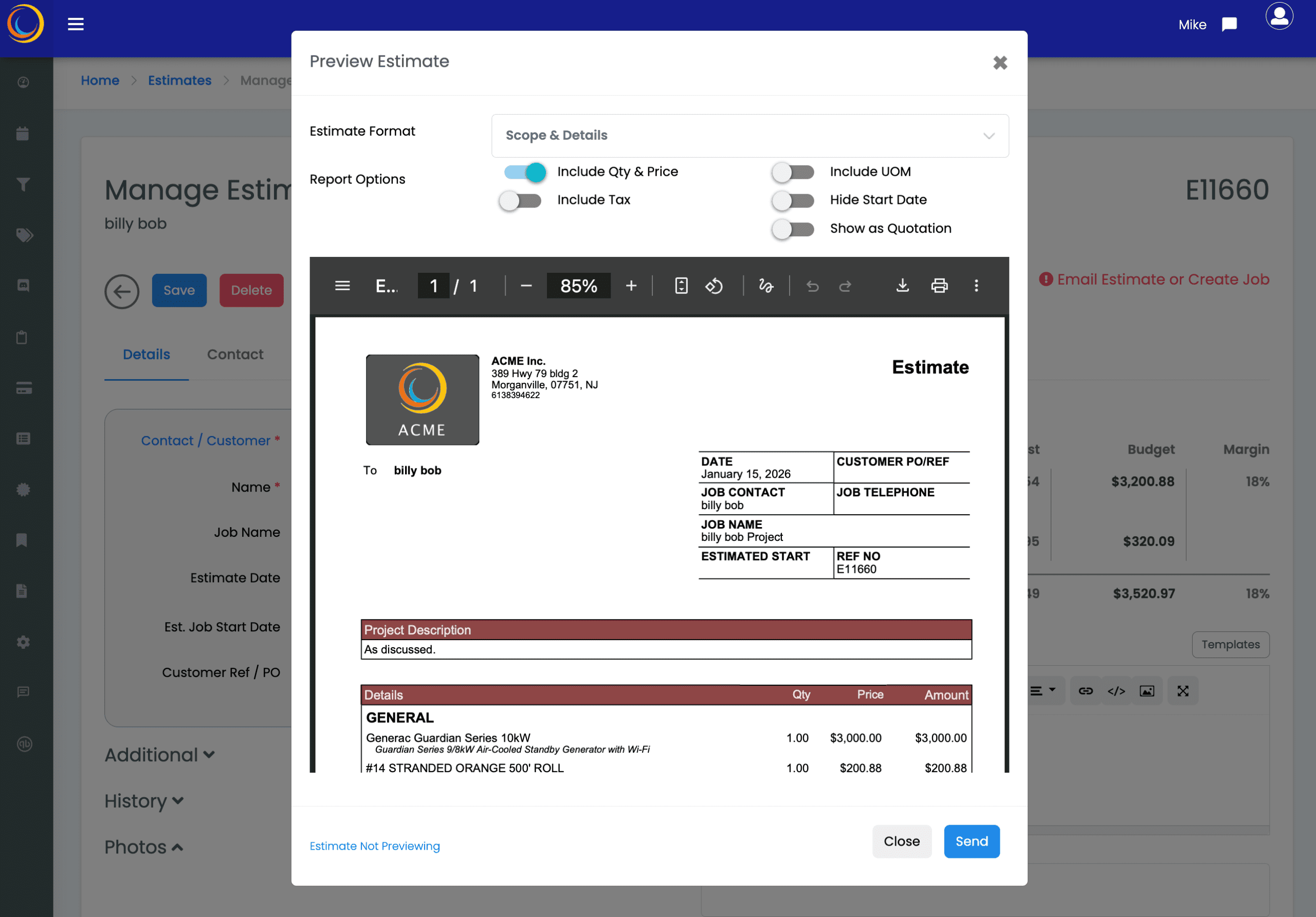 Review margins, costs, content and when ready, email the estimate to your customer for electronic acceptance.