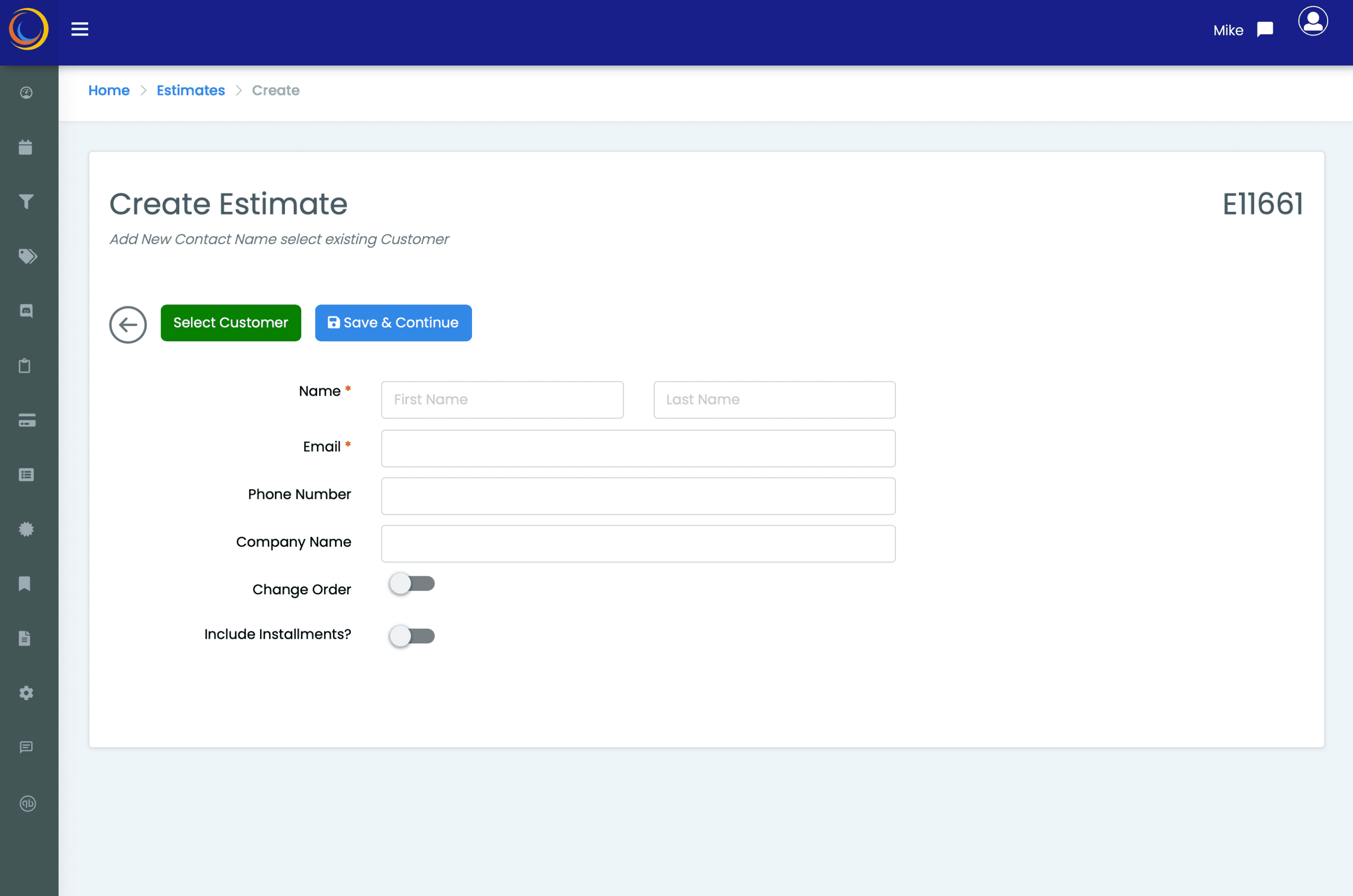- Add a new contact, or choose an existing customer and you’re ready to build out the estimate